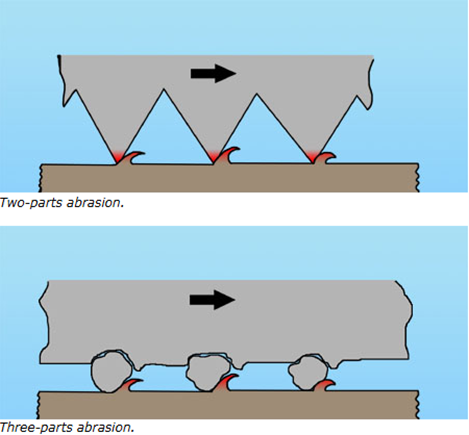 Image: Diagram showing two-body abrasion and three-body abrasion