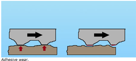 Sliding and rolling wear develops between two surfaces that move against each other. The most common causes are shear and fatigue, often made worse by oxidation or mechanical breakdown. Adhesive wear is a good example, where tips of two sliding surfaces weld together and then tear apart. Fatigue wear is another, where fragments break away after repeated rolling contact, such as in roller bearings.